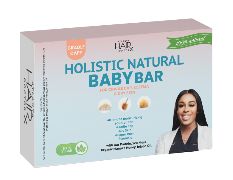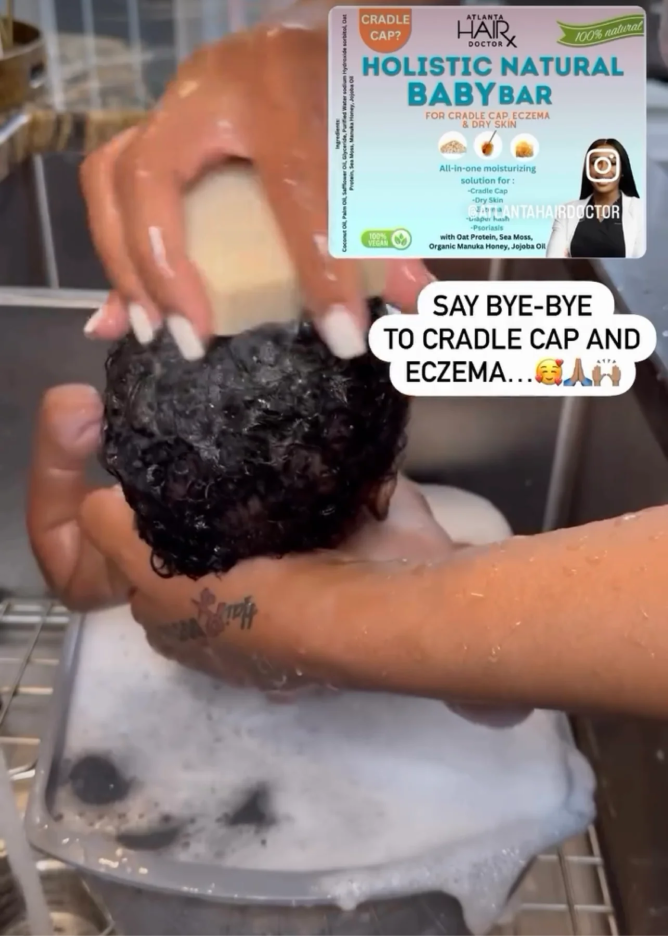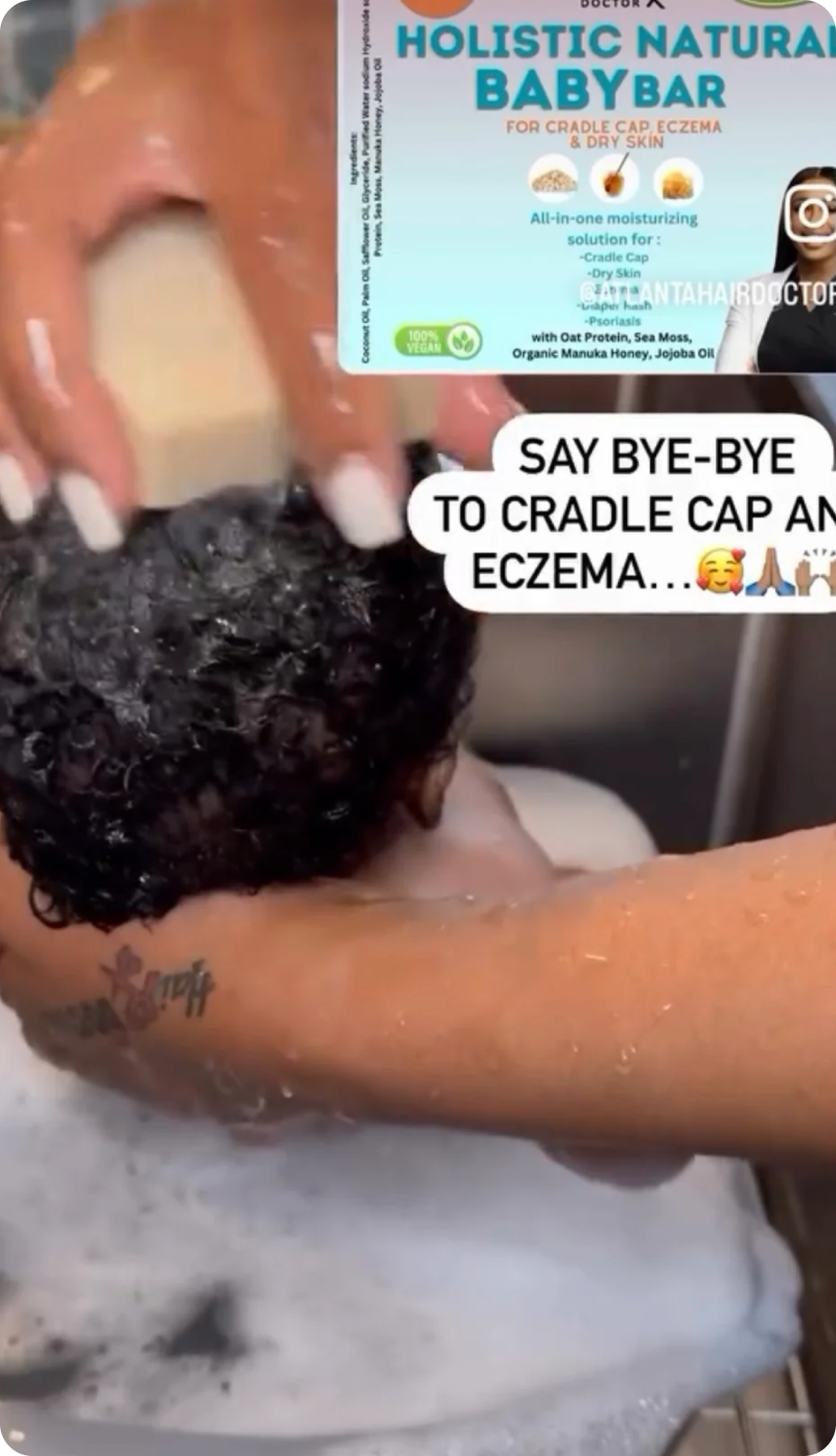 My baby's scalp and skin story- She suffered from cradle cap and dry skin. I was devasted and embarrassed to show my baby on social media, for fear of negative comments. Here I am the Atlanta Hair Doctor and I could not solve my baby's cradle cap and dry skin issues. My grandmother had given me these holistic natural ingredients before she passed. I started mixing them and testing them on my baby Amarachi. I was able to solve her cradle cap a dry skin, so I gave out hundreds of samples to other mother's to use on their babys. Many of the babies suffered from cradle cap, eczema, diaper rash, psoriasis and dry skin. 😔 I was scared that my Holistic Natural Baby Bar was not going to work for them, BUT thanks to my grandmother "Mae" your All natural holistic ingredients worked wonders for those babies!